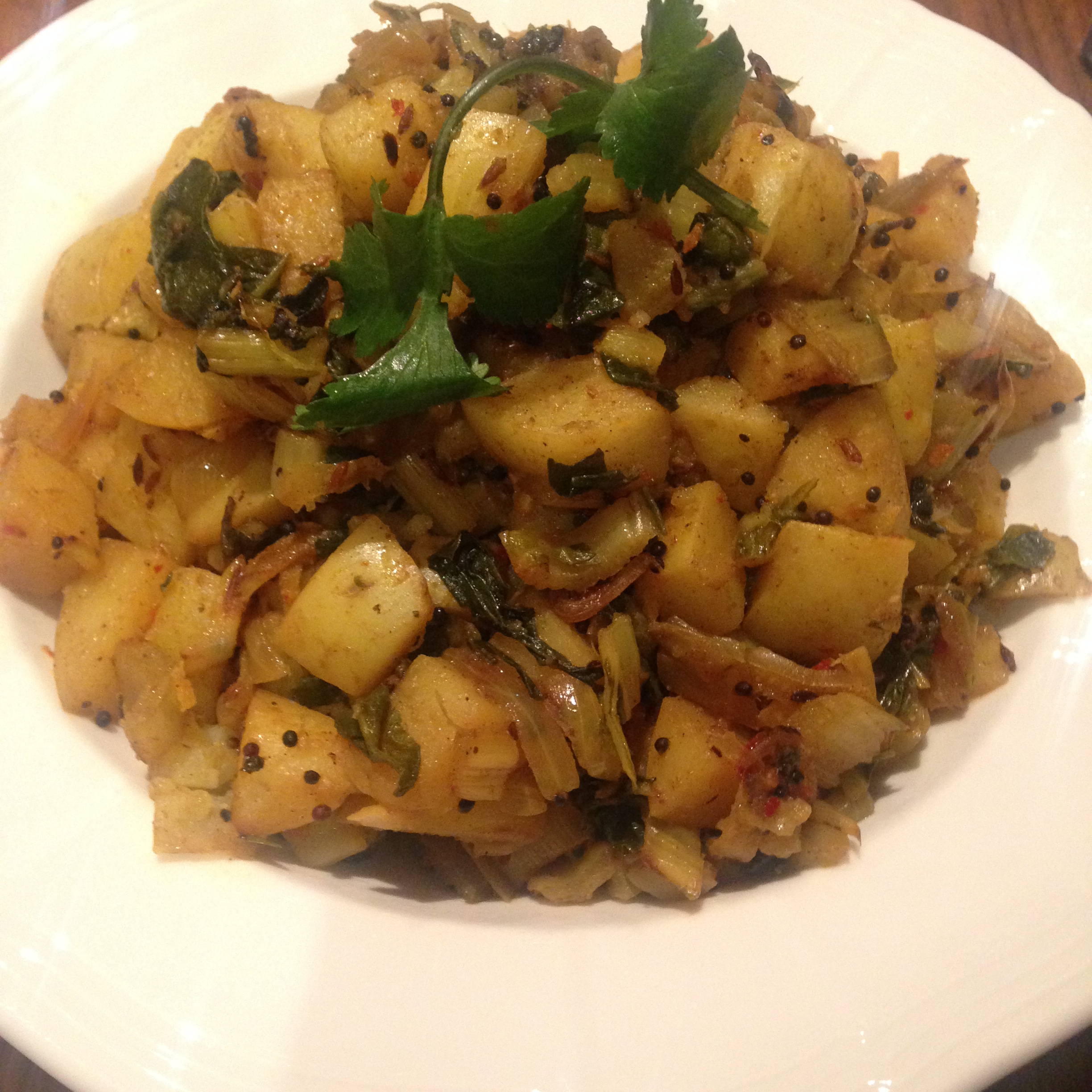 Oven bake potato wedges and follow the recipe Try these recipe with roasted pumpkin, carrots or sweet potatoes. Add 2 tlsp of coconut shreds at the end. Mustard and cumin seeds seeds go well with potatoes, if making a veg curry without potatoes you may leave them out. |