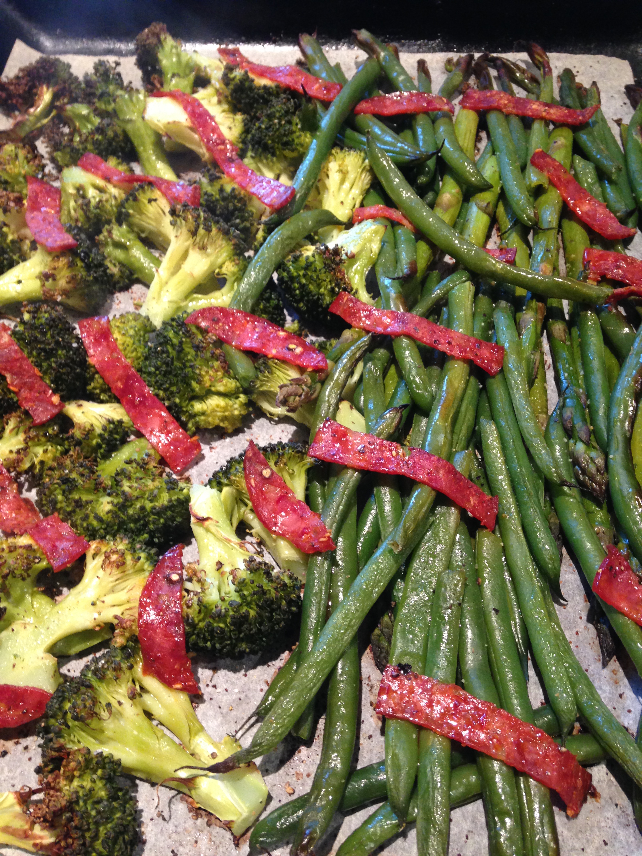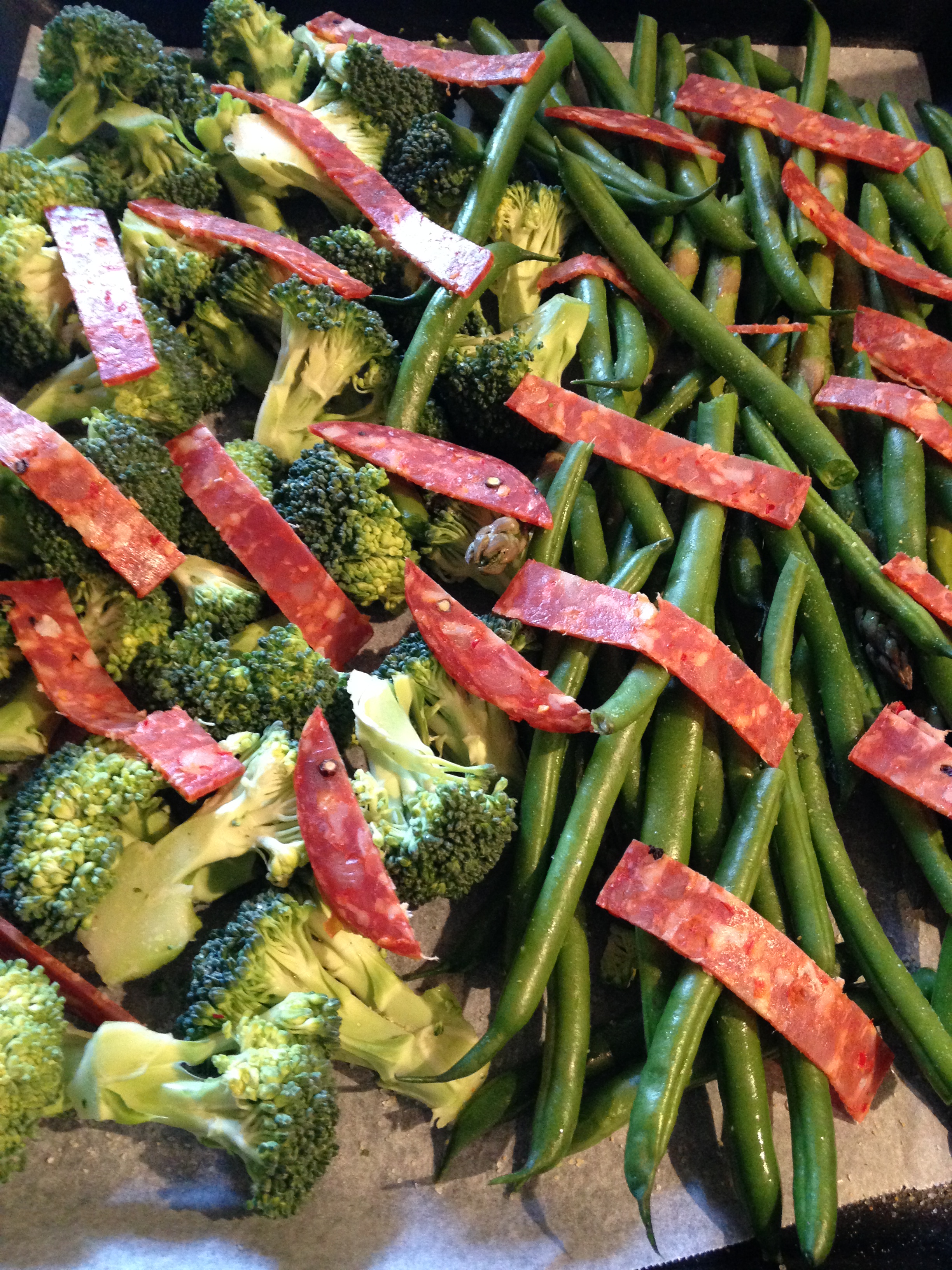 Dress with olive oil, lemon juice and finely grated lemon rind Sprinkle with; pine nuts, flaked almonds, walnuts Dress with mayonnaise instead of goats cheese Serve on a bed of fresh spinach leaves Add other roasting vegetables – carrots, potatoes, fennel, cauliflower, onions, pumpkin, sweet potatoes |