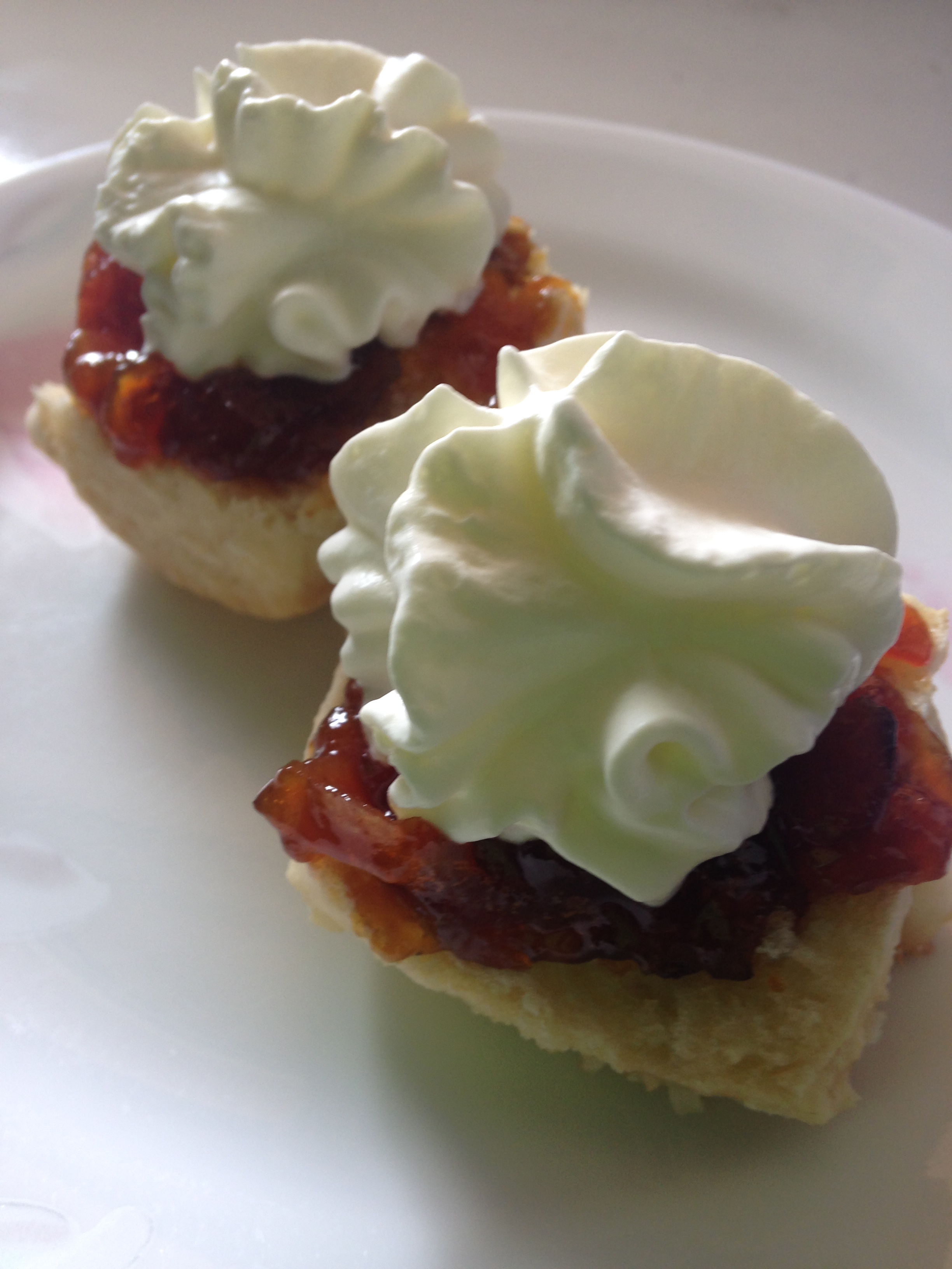 Kumquat and chili jam scones with whipped cream |